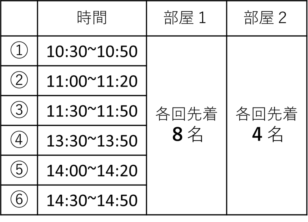 ①10:30~ ②11:00~ ③13:30~ ④14:00~